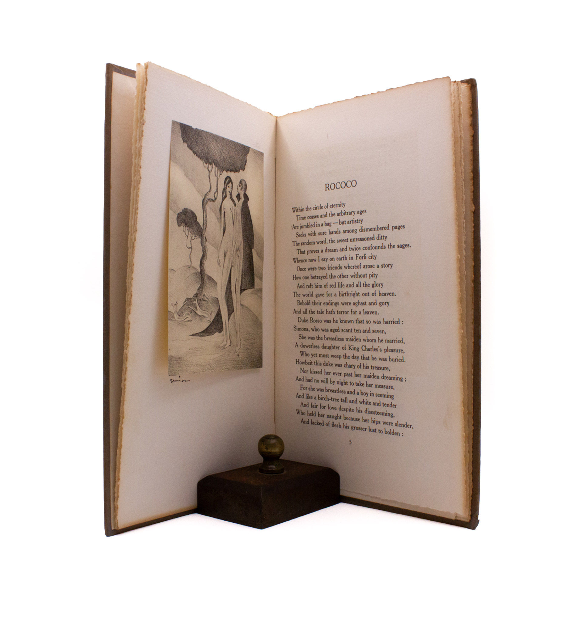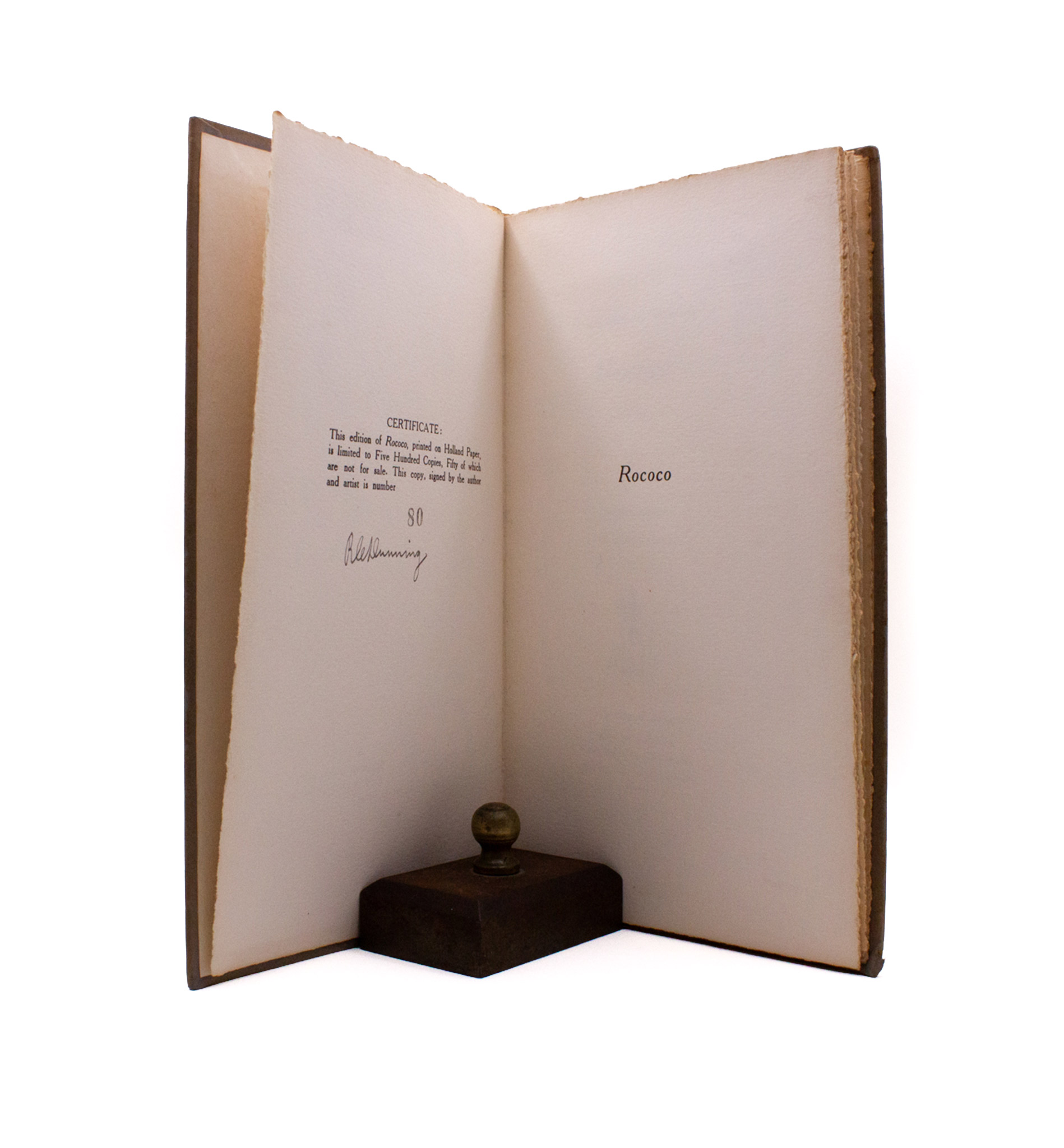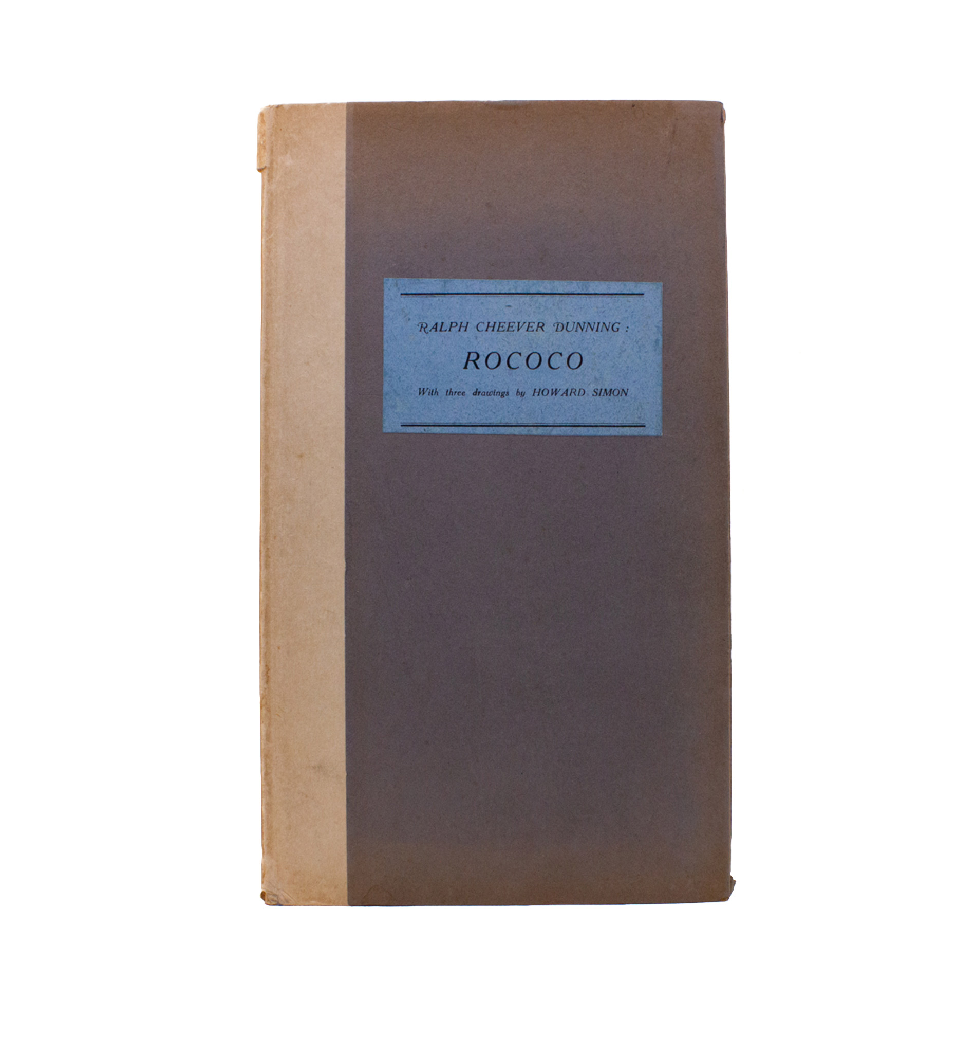 This book was the inaugural volume of The Black Manikin Press, one of the key expatriate presses of Paris in the 1920’s later to print Anaïs Nin, D. H. Lawrence, Djuna Barnes, Henry Miller and more. No. 80 of 500 copies all printed on Holland, the first fifty not for sale, with three illustrations by Howard Simon. Signed by Dunning on the limitation page and by Simon under the frontispiece. Spine mottled with a small break at top (nothing lost); light fading to the edge of the boards; endpapers browned spilling over to adjacent blanks where cut short; stock otherwise fine throughout. No bibliography has been composed for Dunning.