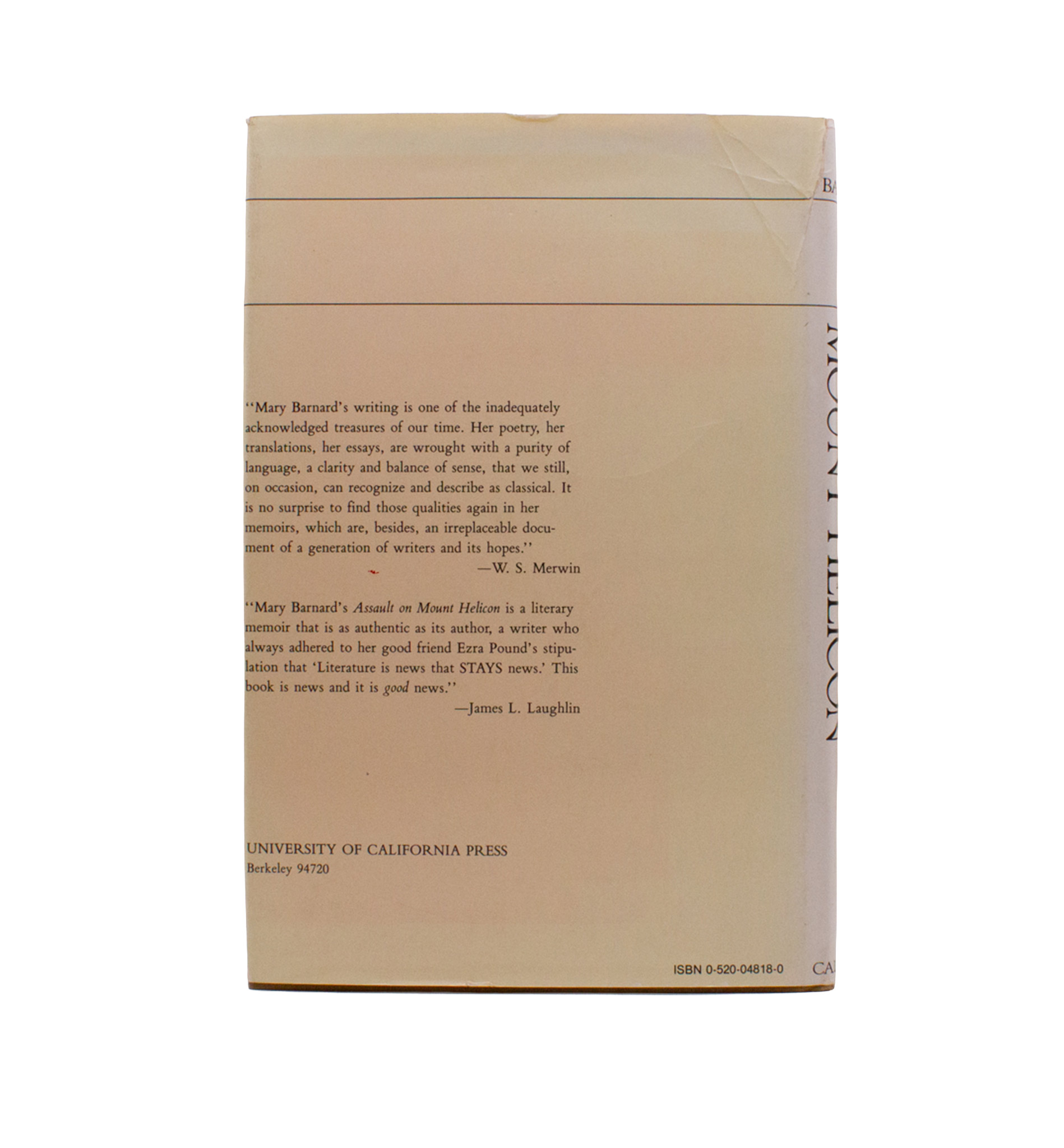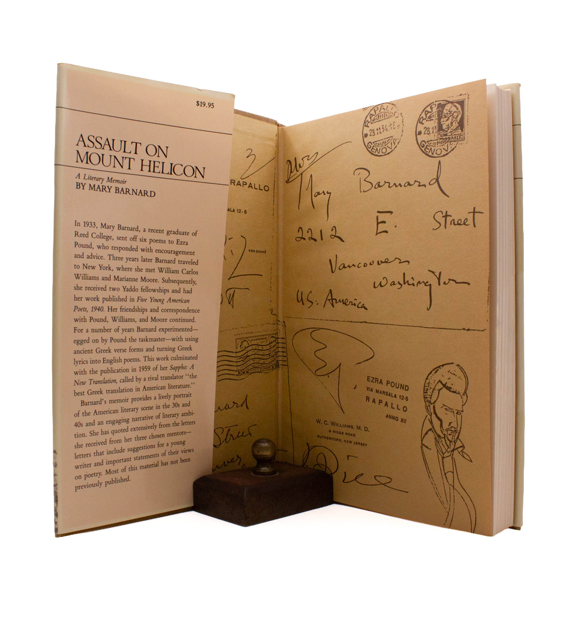 Memoirs of Mary Barnard who, after graduating from Reed College, sent off six poems to EP in 1933 who kept up correspondence with Barnard for years, encouraging her to the use of ancient Greek verse forms and translation in English lyric, culminating in her 1959 publication Sappho: A New Translation which has been hailed “the best Green translation in American literature.” With further letters from W.C.W. and Marianne Moore. First edition, with a few marks in pencil by A. David Moody. A fine book; one tape repair to the jacket, sunned to spine.