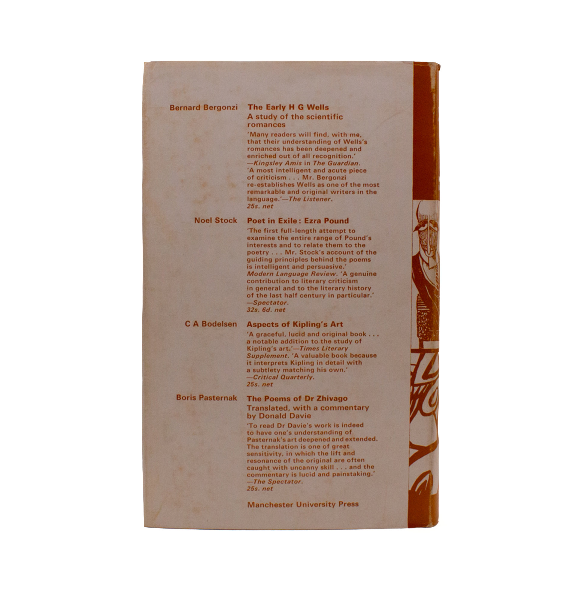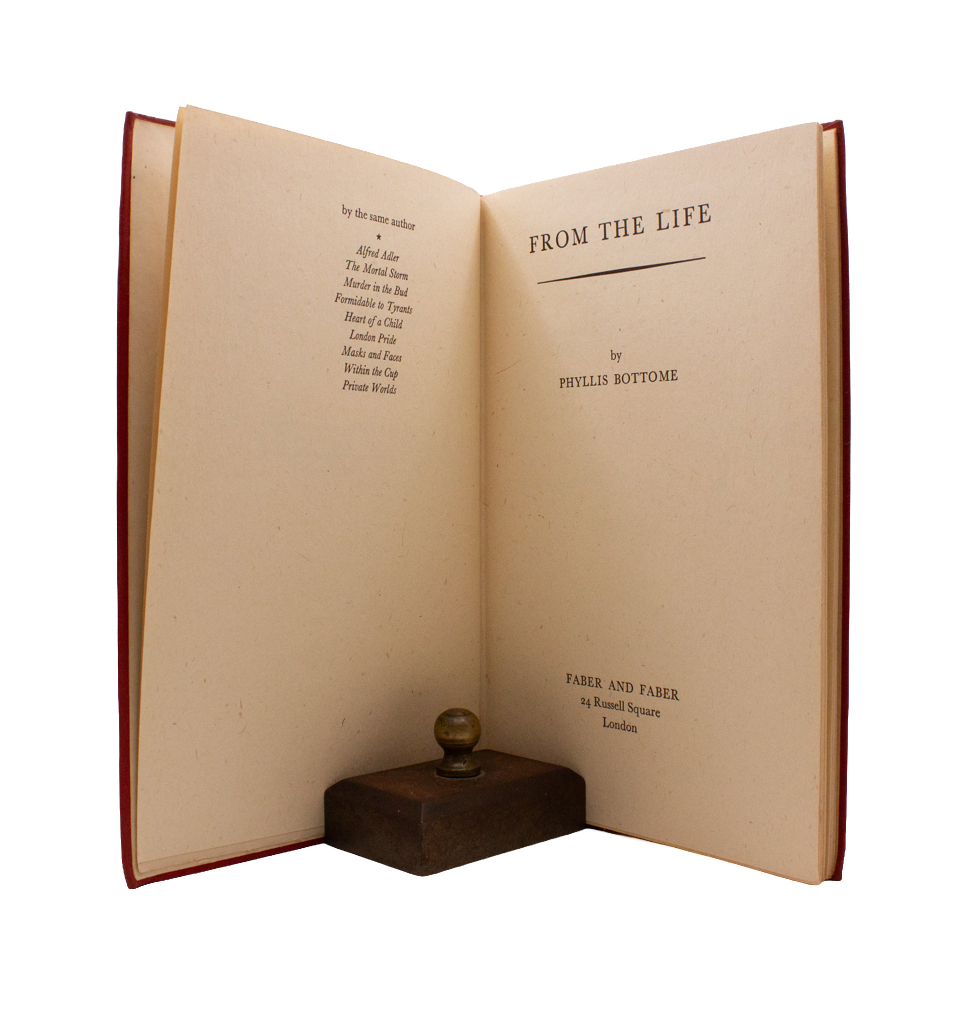 Together with similar essays on Alfred Adler, Max Beerbohm, Ivor Novello, Sara Delano Roosevelt, and Margaret MacDonald Bottome. First edition, lacking the jacket, with the ink ownership inscription of Rosalind Hesselberg (?) dated June 1945 to ffep. From the library of A. David Moody, with a small referential note of his laid-in to the essay on Pound.