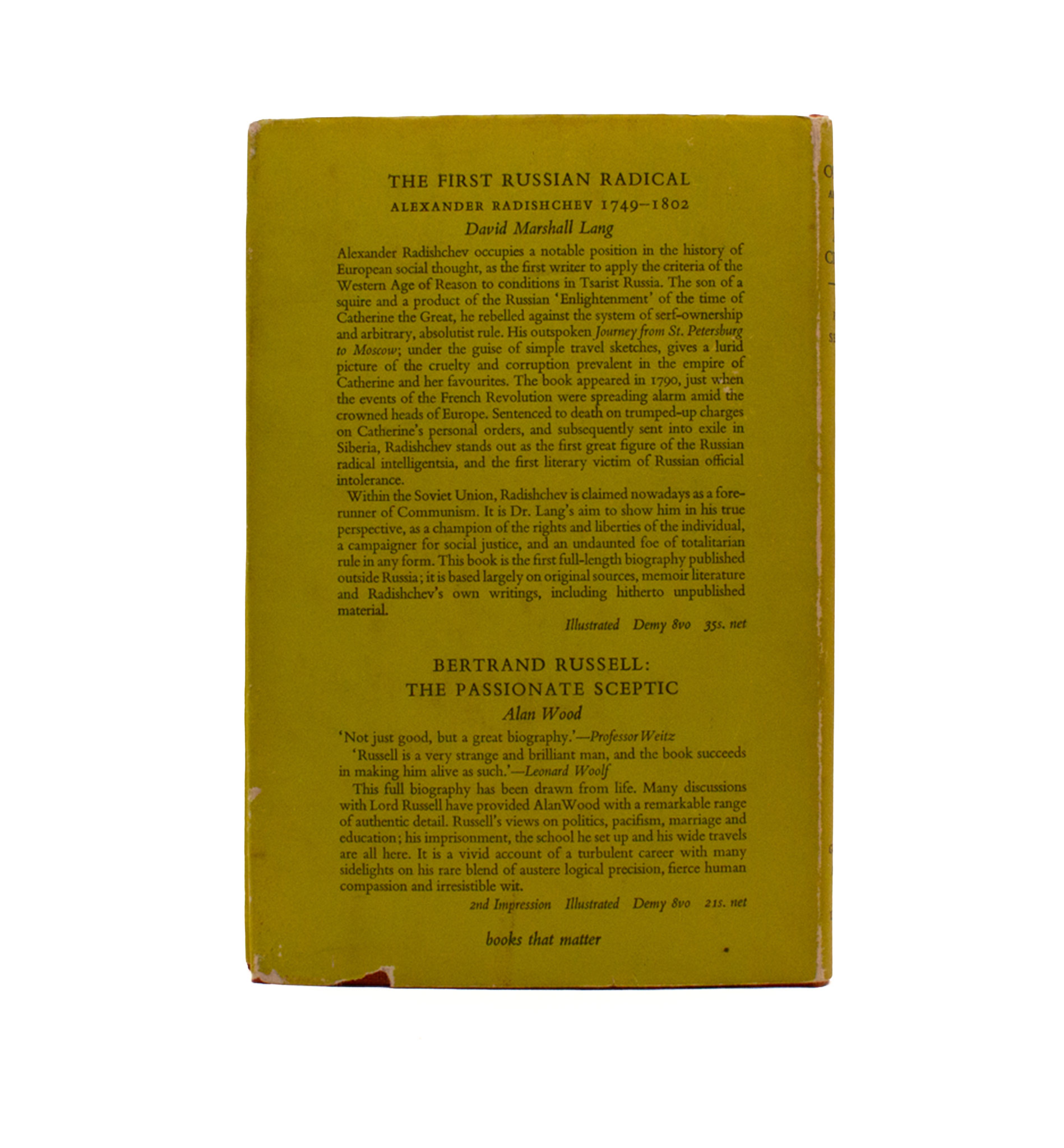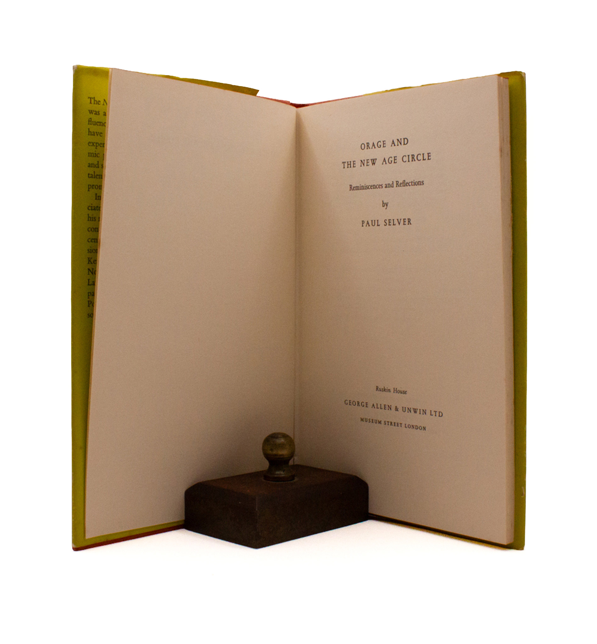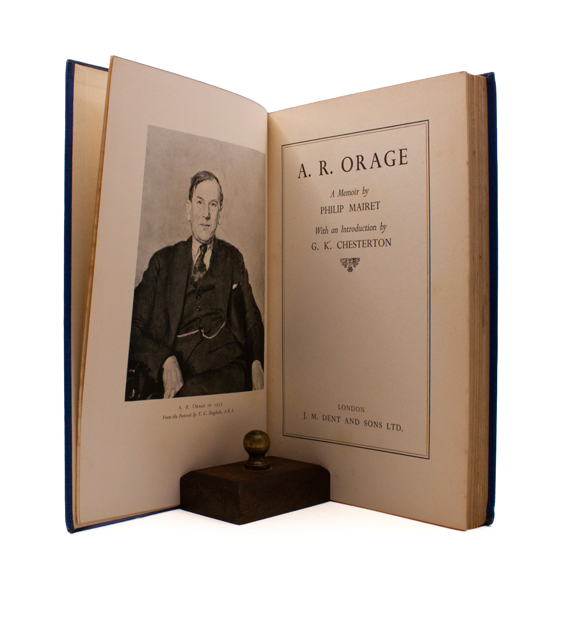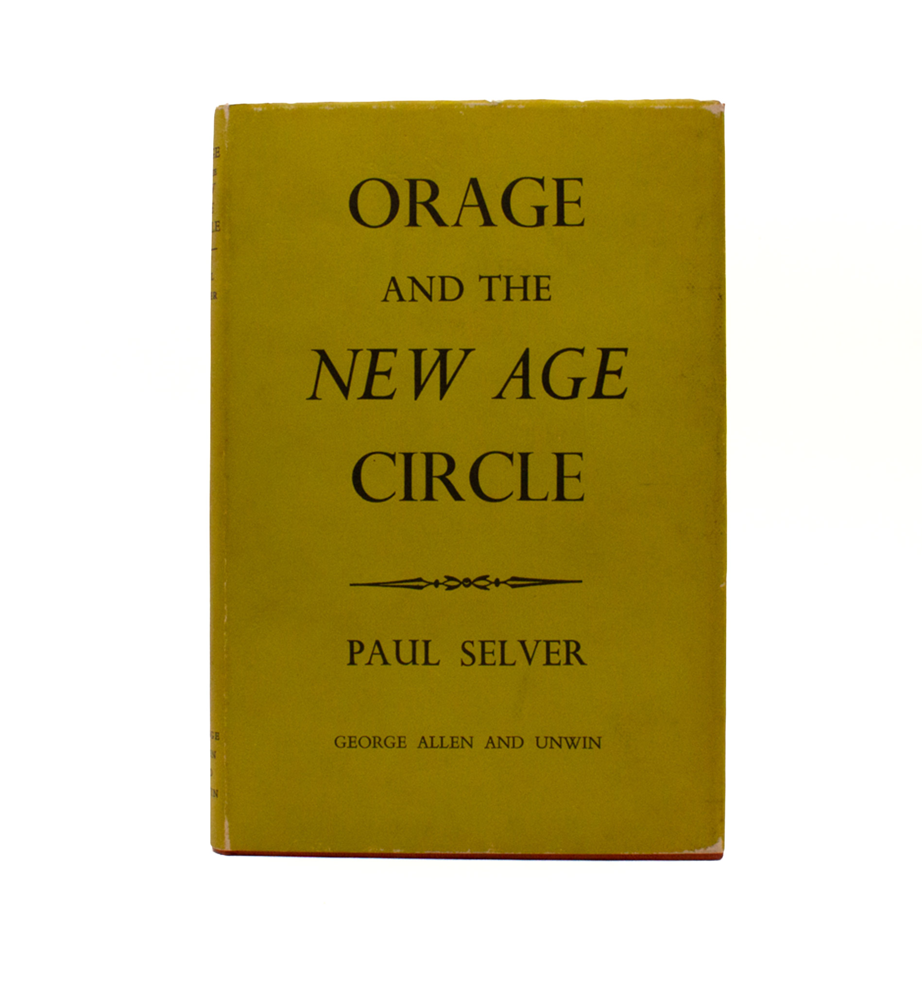 A memoir of this well respected and slightly shadowed figure who often published his diagnoses anonymously, and cultivated action rather than style, by Philip Mairet, a colleague of Orage’s during his last years as editor of the New English Weekly. First edition; a little dark stain top and tail of the spine, and at the bottom of the front-cover, but overall a nice, clean copy.