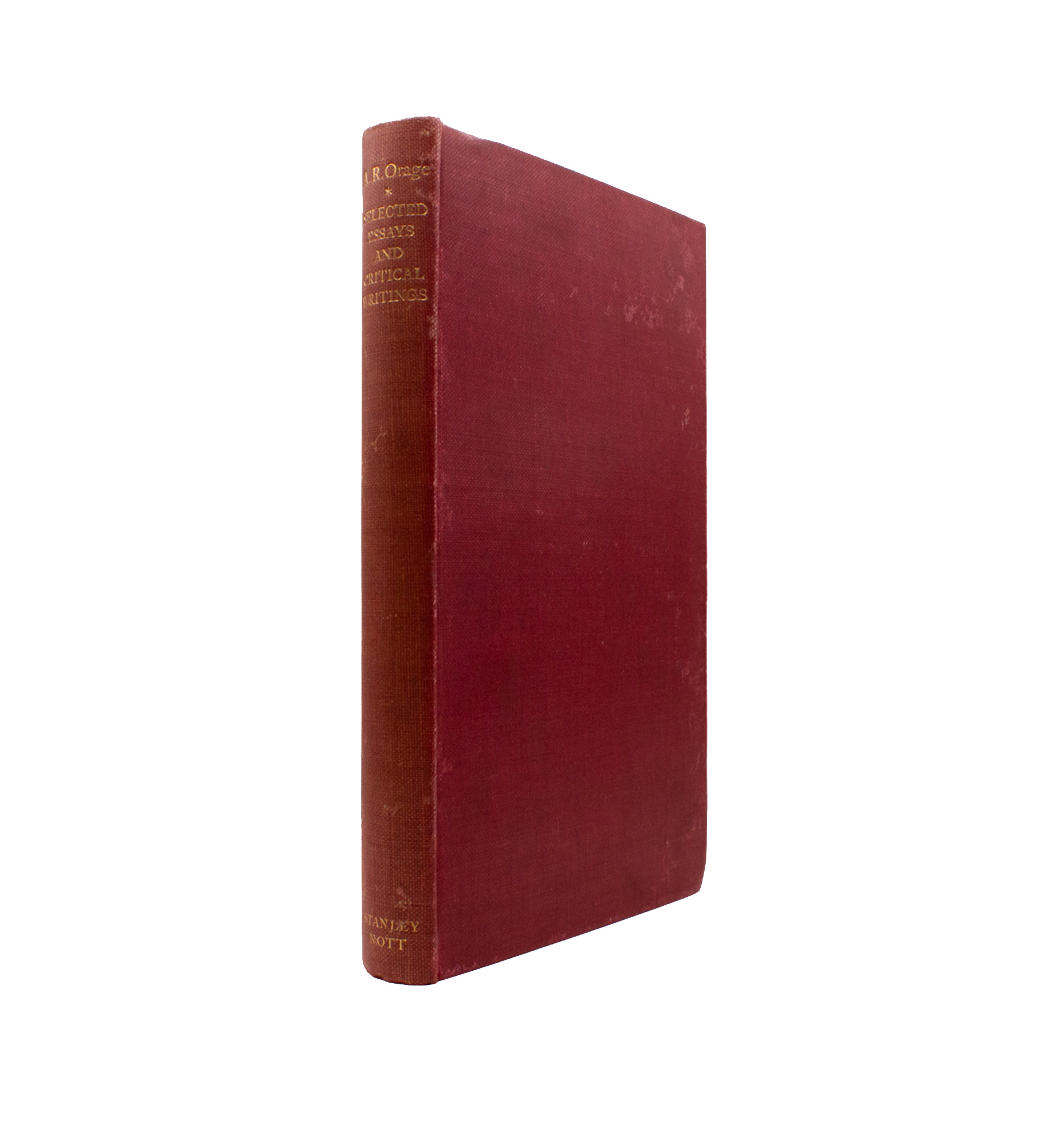 A selection of essays by Orage, editor of The New Age and later the New English Weekly, starting with Orage’s many-parted Art of Reading. Pencil ownership inscription from previous owner to ffep, and occasional marginal notes throughout. Light foxing, light rubbing to the boards, but all very good.