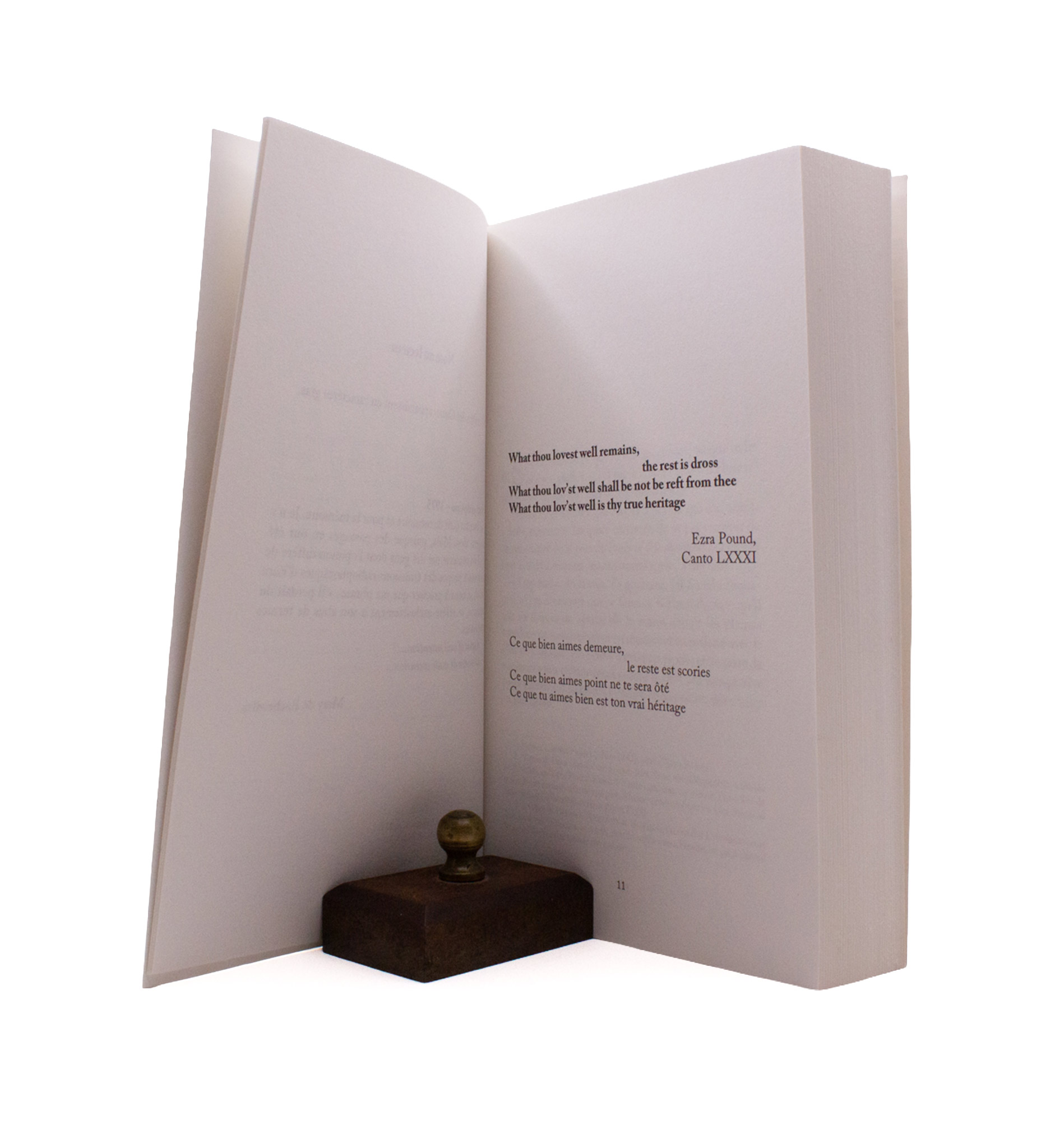 A small book of poetic prose by de Roux upon two lost lives, Mao Tse-Tong & Ezra Pound, both poet statesmen; with a brief essay by de Roux on EP dated 1973, and a bibliography of the author’s works. Third edition, after a first in 1974 and a second in 1985. A very pretty printing with shining black ink.
