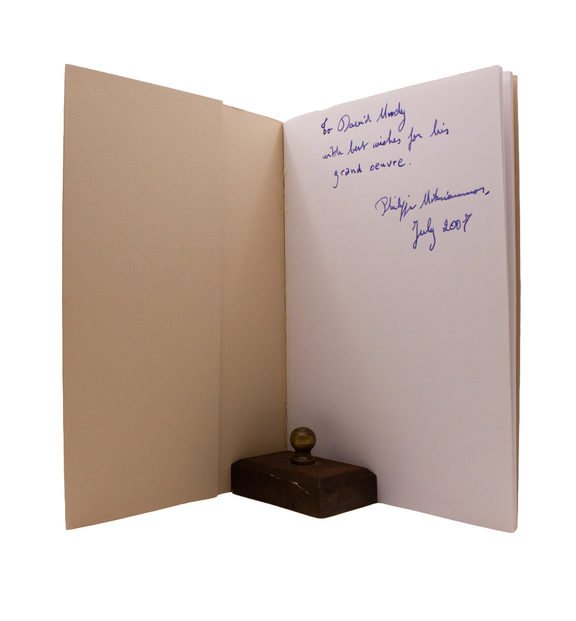 A collection of essays by Dominique de Roux, in French, on EP; with foreword by M. de R., translated to French by Philippe Mikriammos; a further essay by the editor, a calendar of the encounters between D. de R. and EP by Mikriammos, and a small amount of correspondence between D. de R. and EP and Olga Rudge. One of 300 copies “sur offset,” a further 33 were printed on vergé. Inscribed in ink to the ffep from Philippe Mikriammos to David Moody, “with best wishes for his grand oeuvre.”