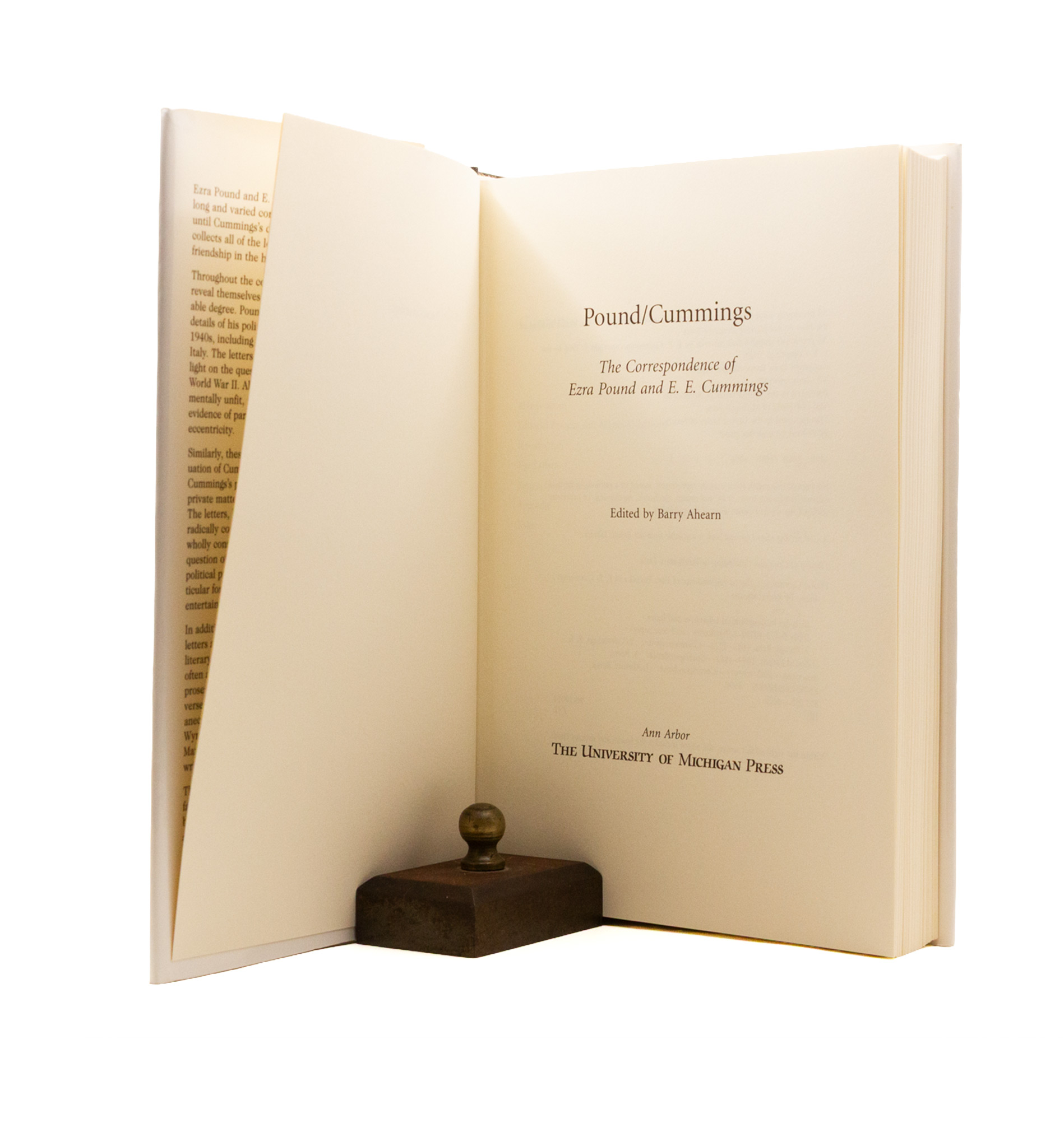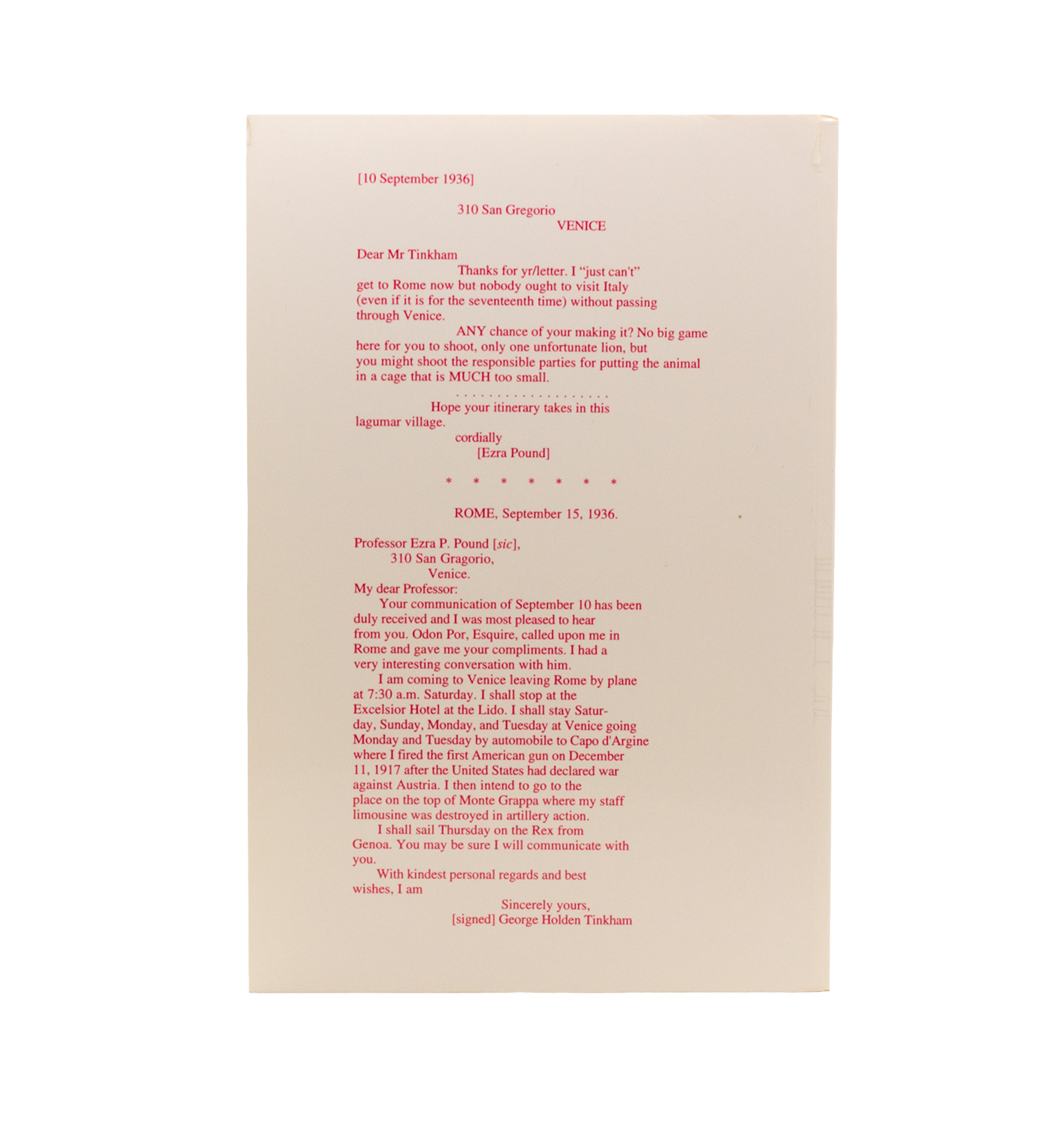 Hunders of letters between EP and e.e. c. who met first in Paris in 1921, starting from 1926 when Pound was in Rapallo. A very near fine copy; top edge of jacket slightly folding outwards. Too late for Gallup.