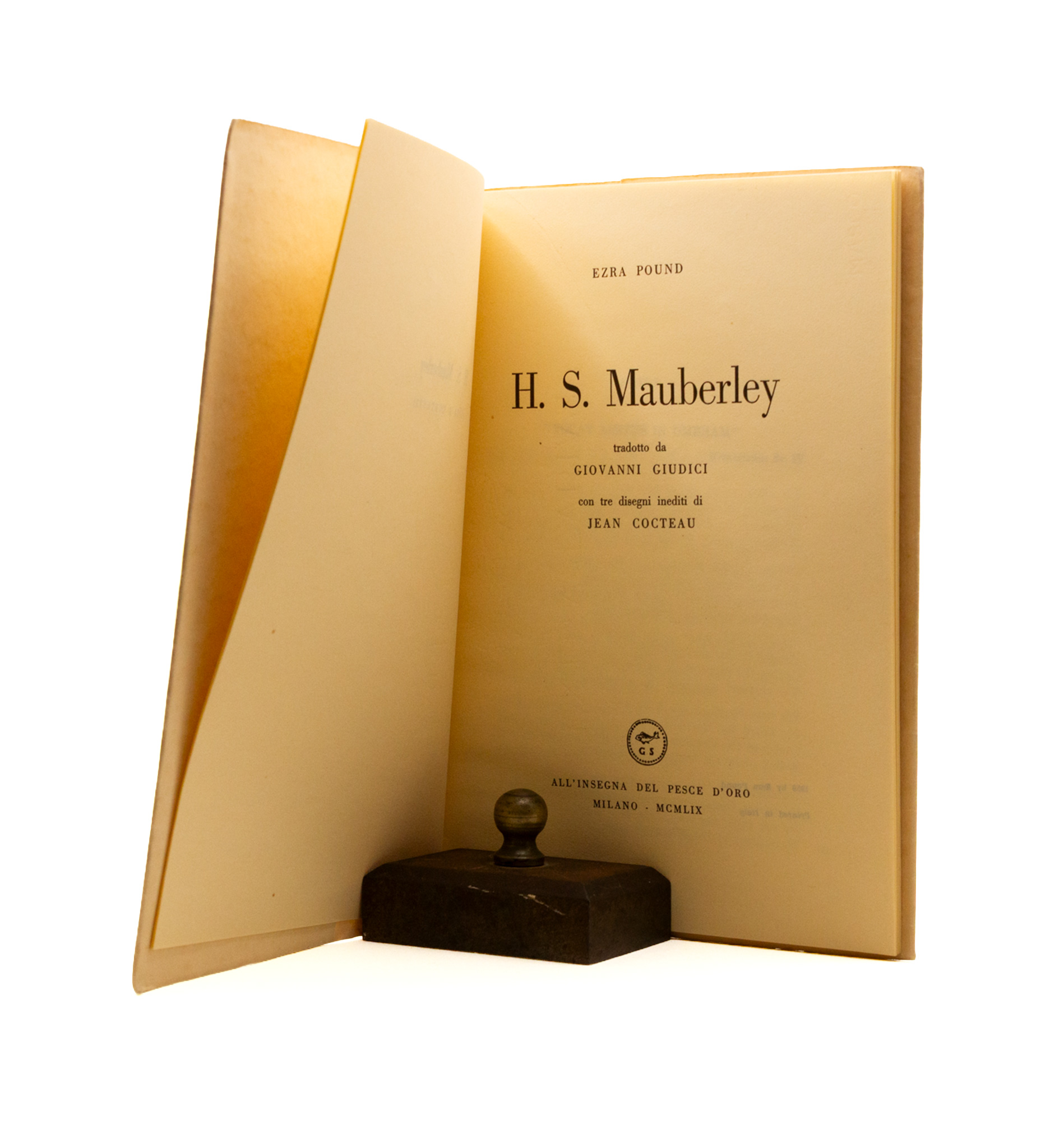 First Italian translation of H.S.M., printed vis-à-vis the English. With three previously unpublished drawings of Pound by Jean Cocteau. No. 492 of 1000 copies. Fourth in the Fascioli del Verri series. A near fine copy. Gallup D75.