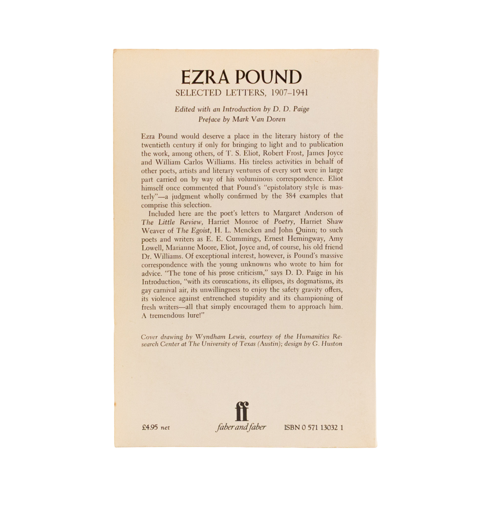 The second instalment in The Correspondence of Ezra Pound series by New Directions, this here the first English edition published concurrently with the American. Very occasional symbolic pencil annotation by David Moody in the margins. Light wear to fore-edges and spine of jacket. Too late for Gallup.