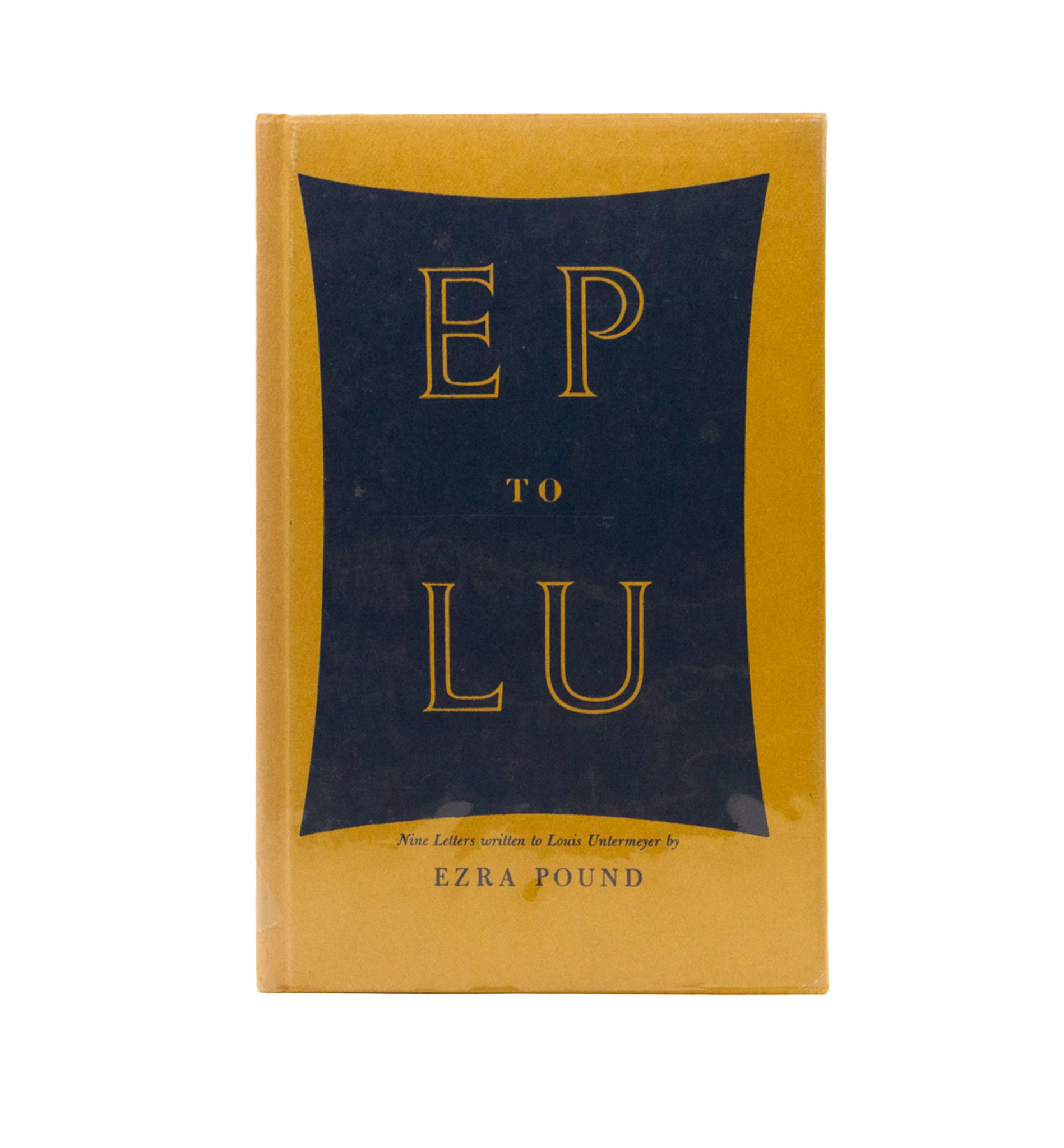 A selection of 9 letters from Pound to Louis Untermeyer, with reproductions of the originals. First & sole edition, mostly fine save spotting to top-edge, in the original acetate wrapper with two tape repairs to rear and well preserved. Gallup A81.