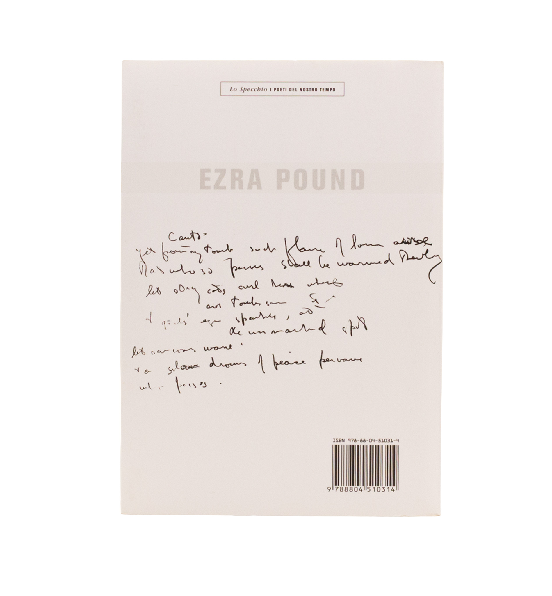 Second edition of the Posthumous Cantos, vis-à-vis Italian translations presumably by Massimo Bacigalupo. Occasional ingiallendo to the edges, top right corner bumped, but overall very nice. Much too late for Gallup.
