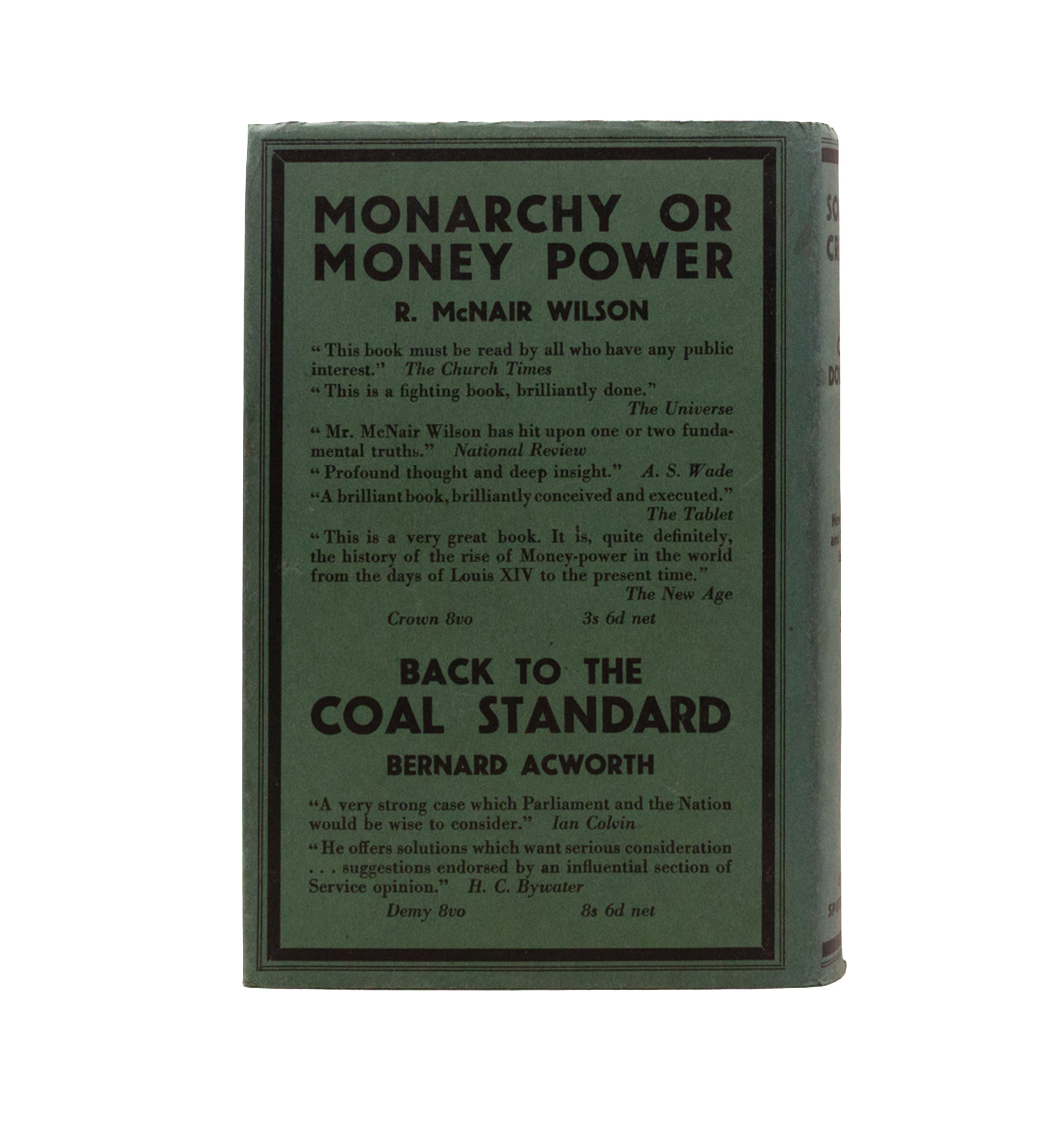 On the history of the banking system in America and its manipulations in favour of the few, with accusations against the Rothschilds family. With such tales as the founding of the Bank of England as we read elsewhere in Pound. The Rare Omni Publications edition (spiritual successors to Kasper & Horton’s Square $ Series), undated after the Meador Publishing Company first edition, 1941(?). Slight fading at edges to back cover and spine, otherwise as published.