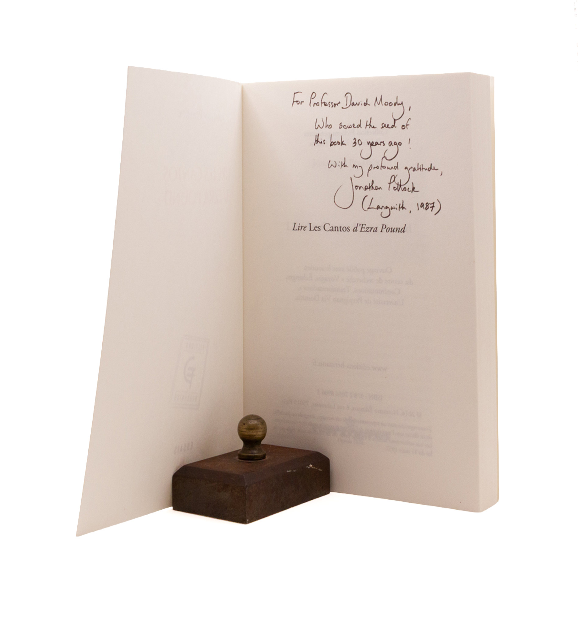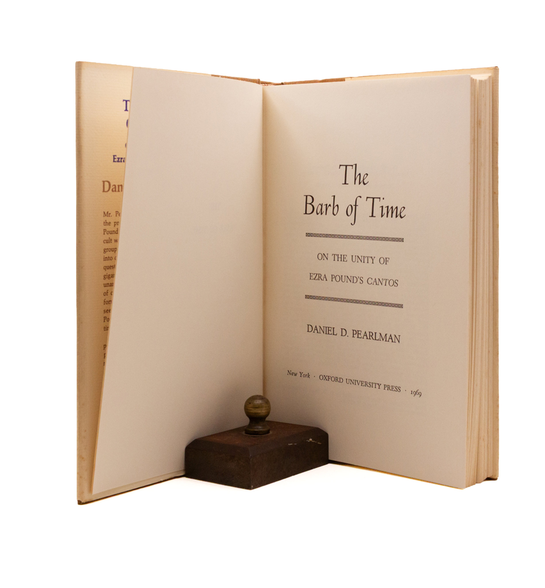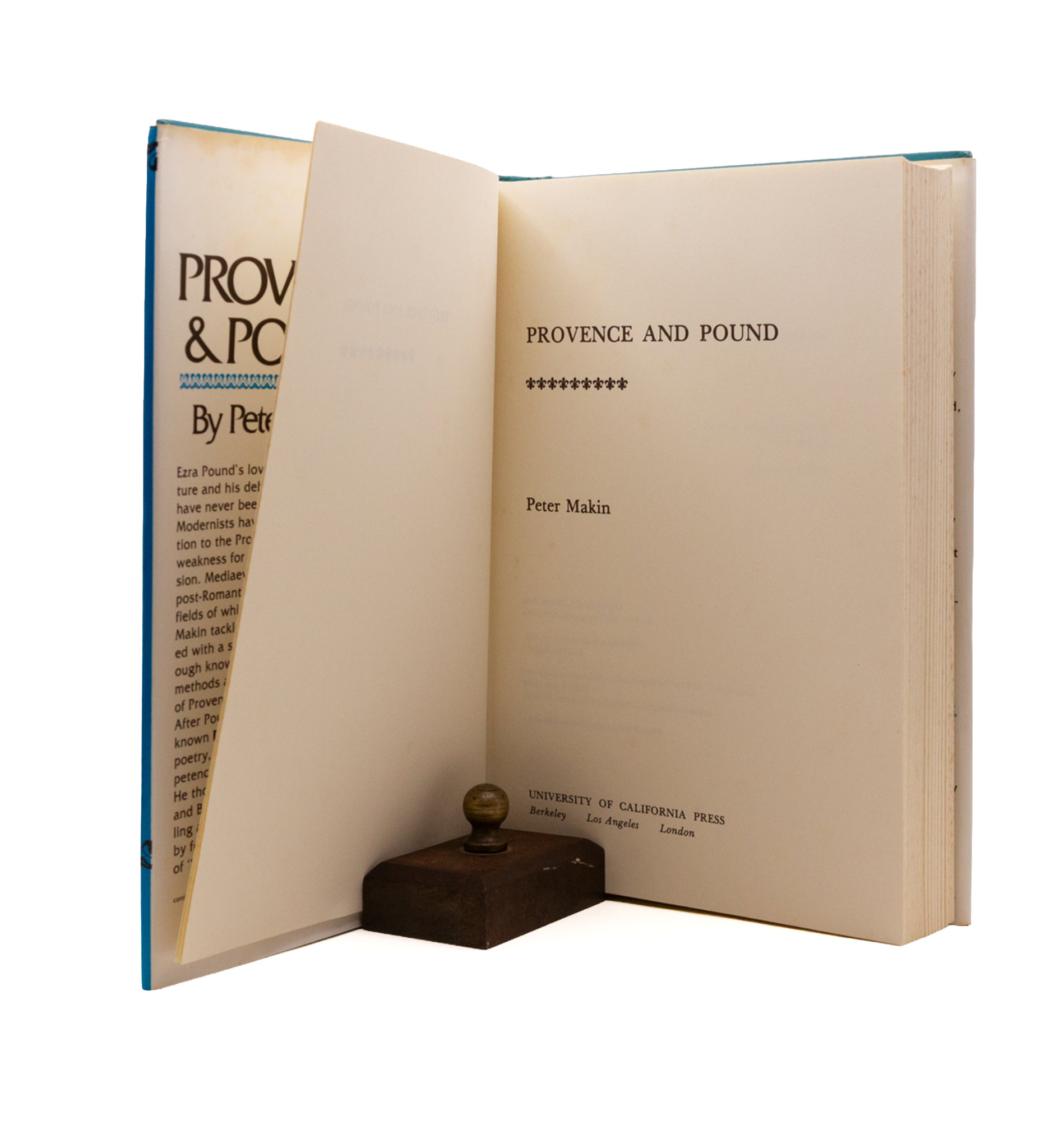 Stock’s first book on Pound, after a decade of collaboration and editorials (Edge, Impact, Love Poems of Ancient Egypt), composed using unpublished manuscripts at Brunnenburg. First edition, a fine copy save spotting on the edges (not the pages) in a very near fine & beautiful jacket, unforuntately price clipped (cutting out history).