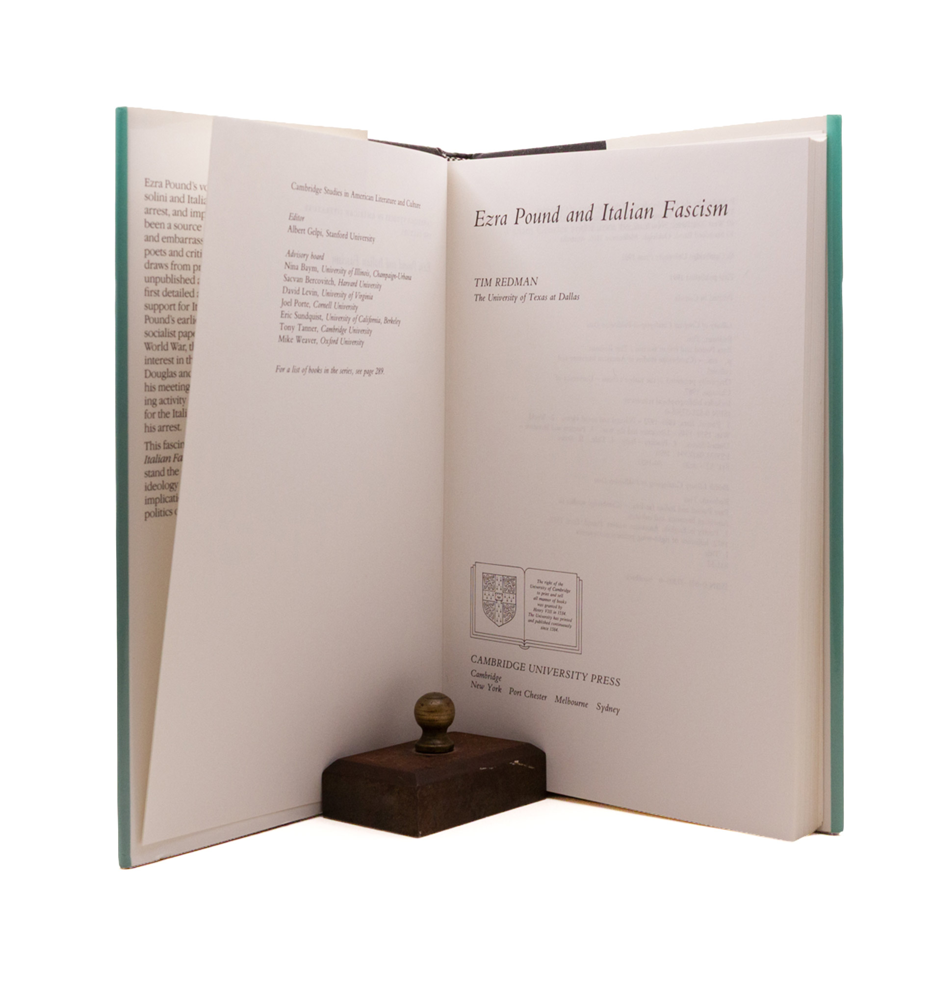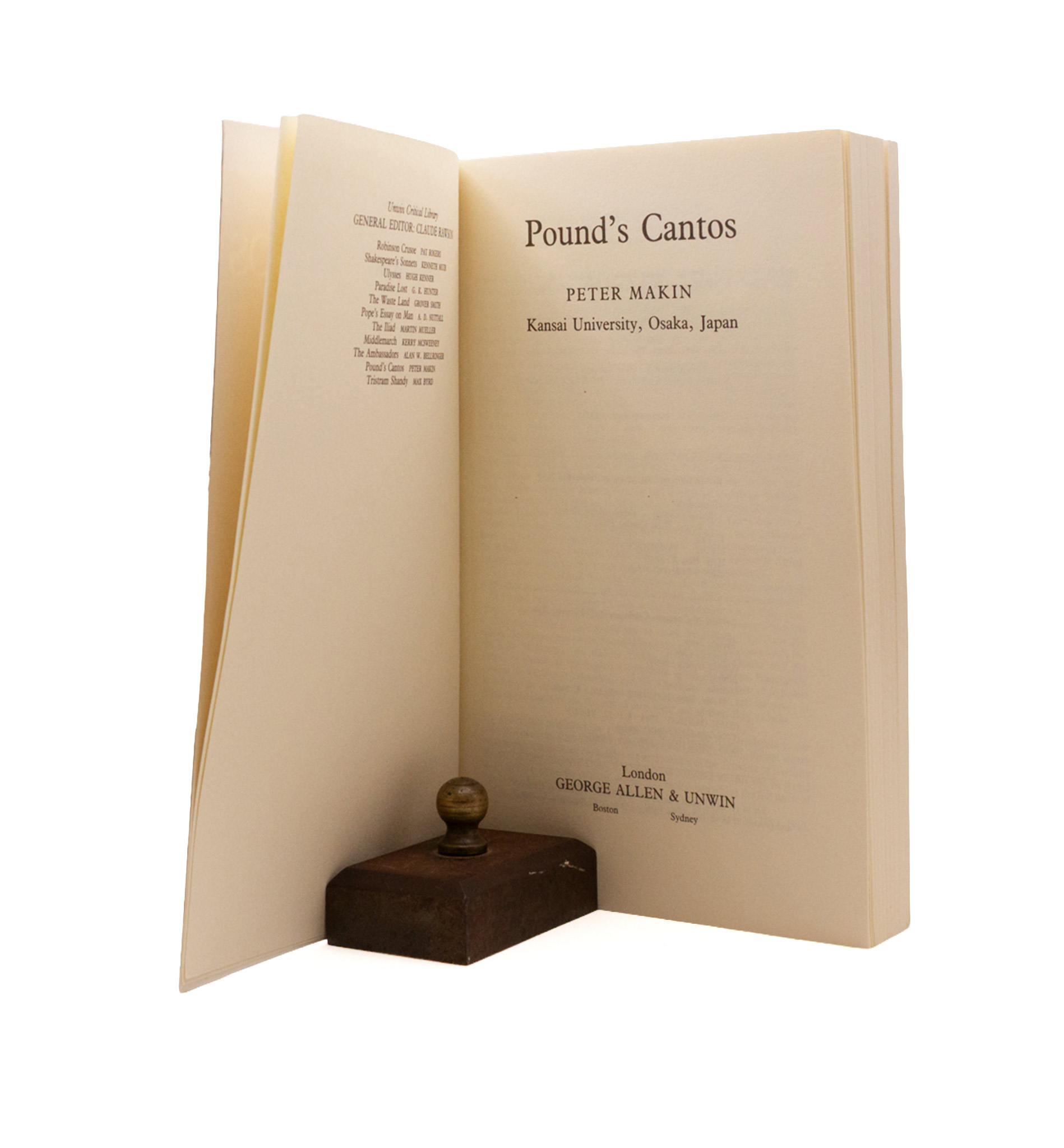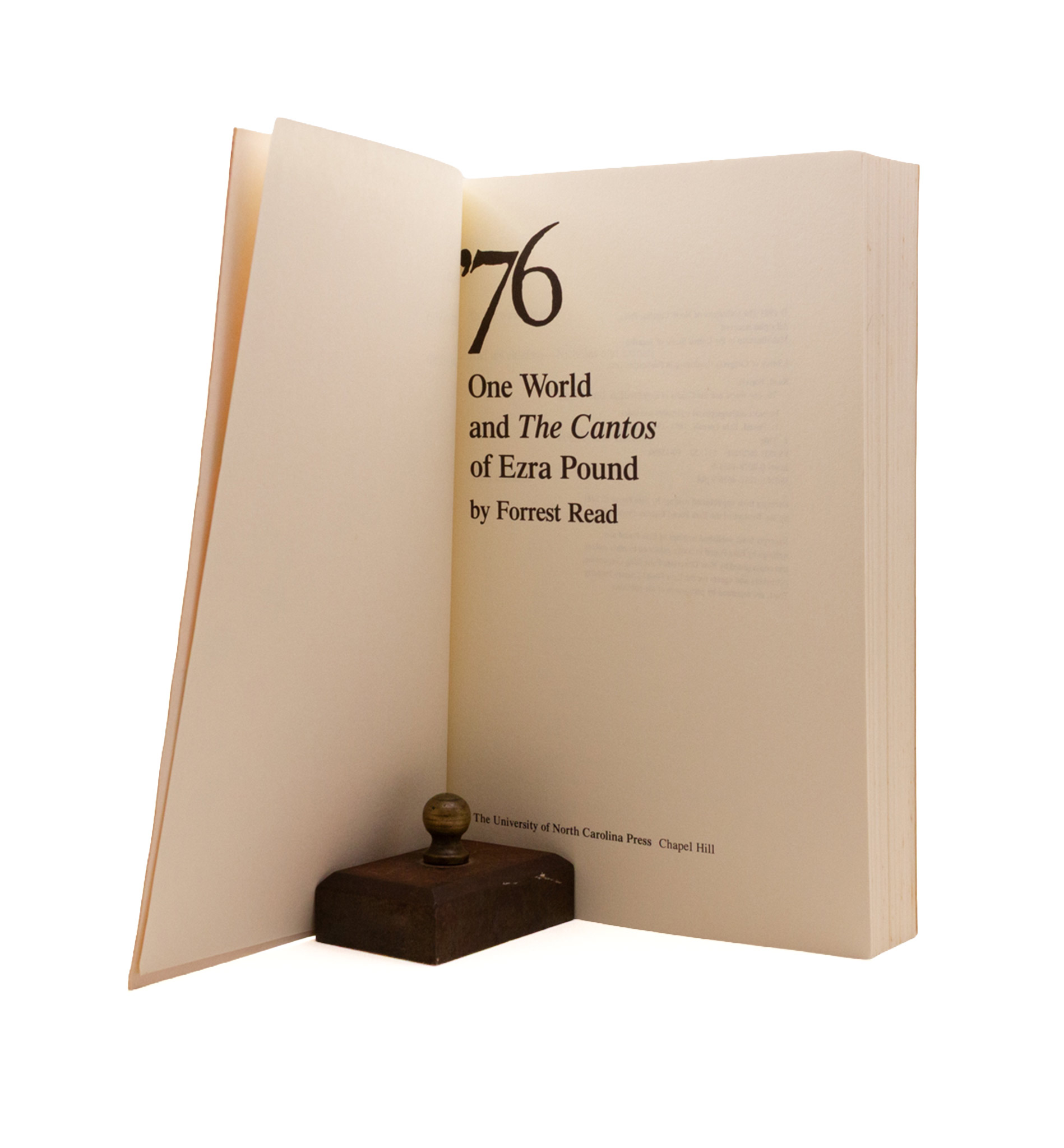 Stock’s first book on Pound, after a decade of collaboration and editorials (Edge, Impact, Love Poems of Ancient Egypt), composed using unpublished manuscripts at Brunnenburg. First edition, a fine copy save spotting on the edges (not the pages) in a very near fine & beautiful jacket, unforuntately price clipped (cutting out history).