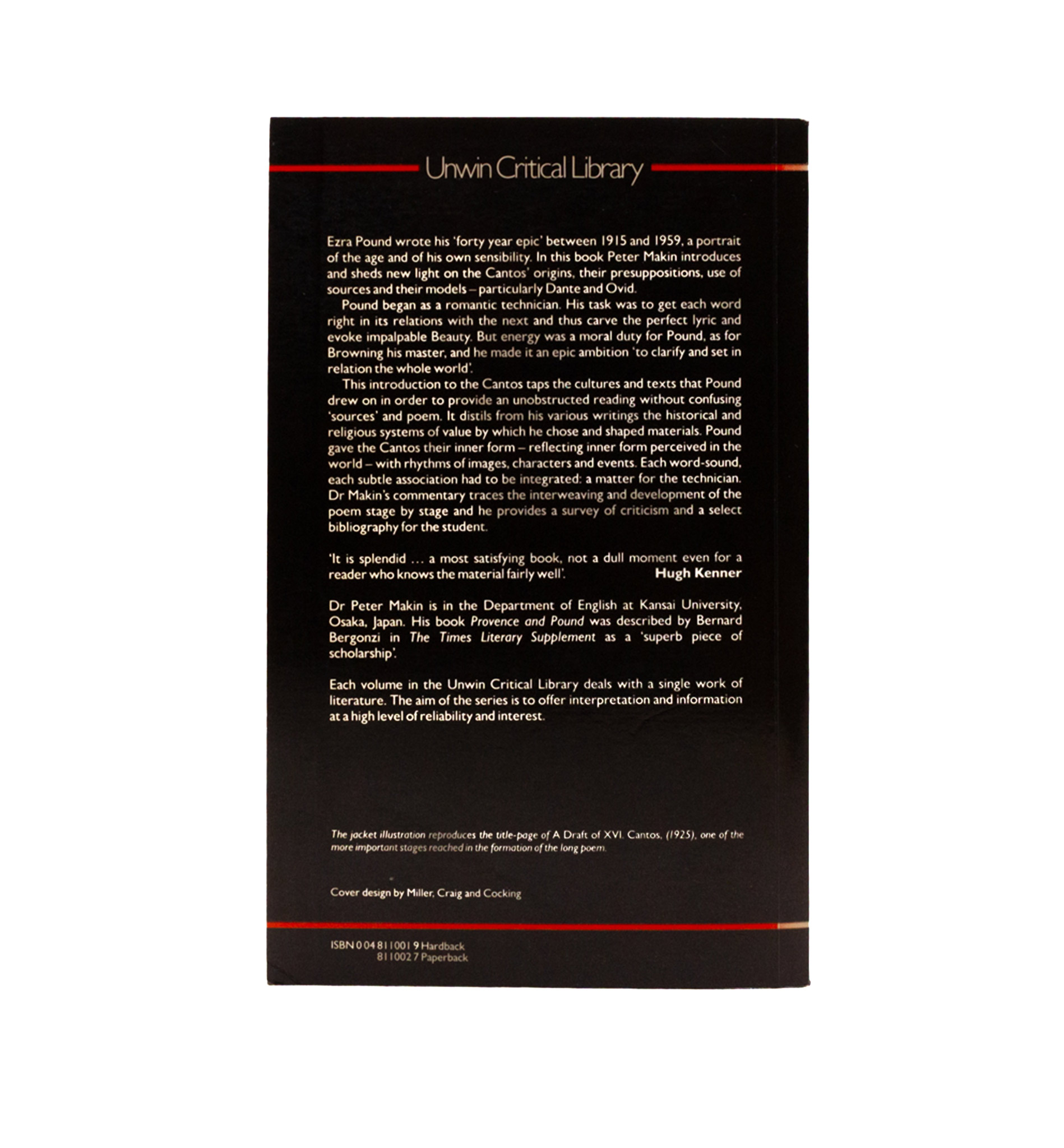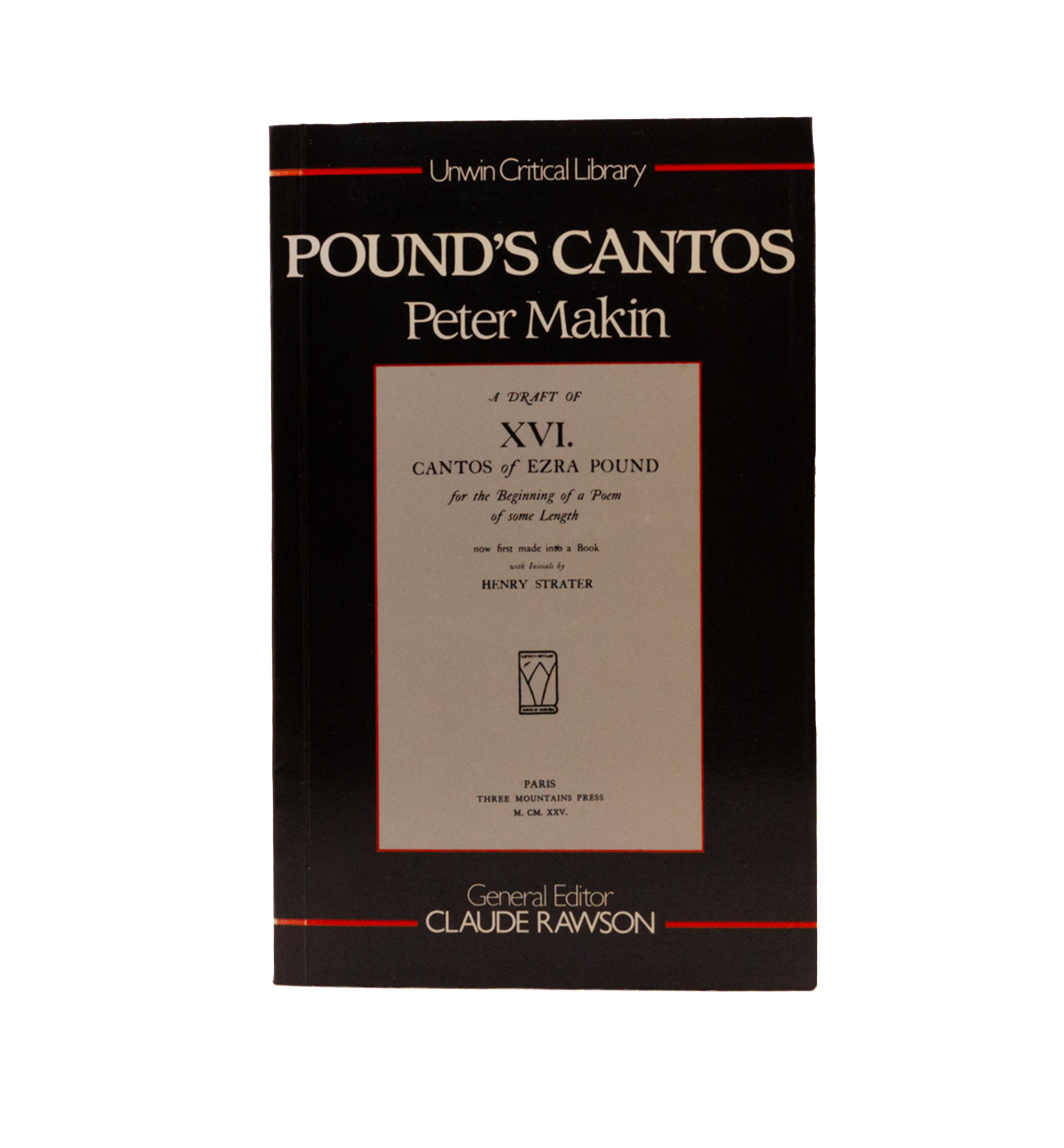 One of the great works of Poundian scholarship (of its day; or at least, one of the few on the shelves at the London Library). A study of the coherence of the form of The Cantos with the Commedia, and Pound’s developing treatment of time throughout the poem. First edition, a fine enough copy with the very occasional tick from ADM.