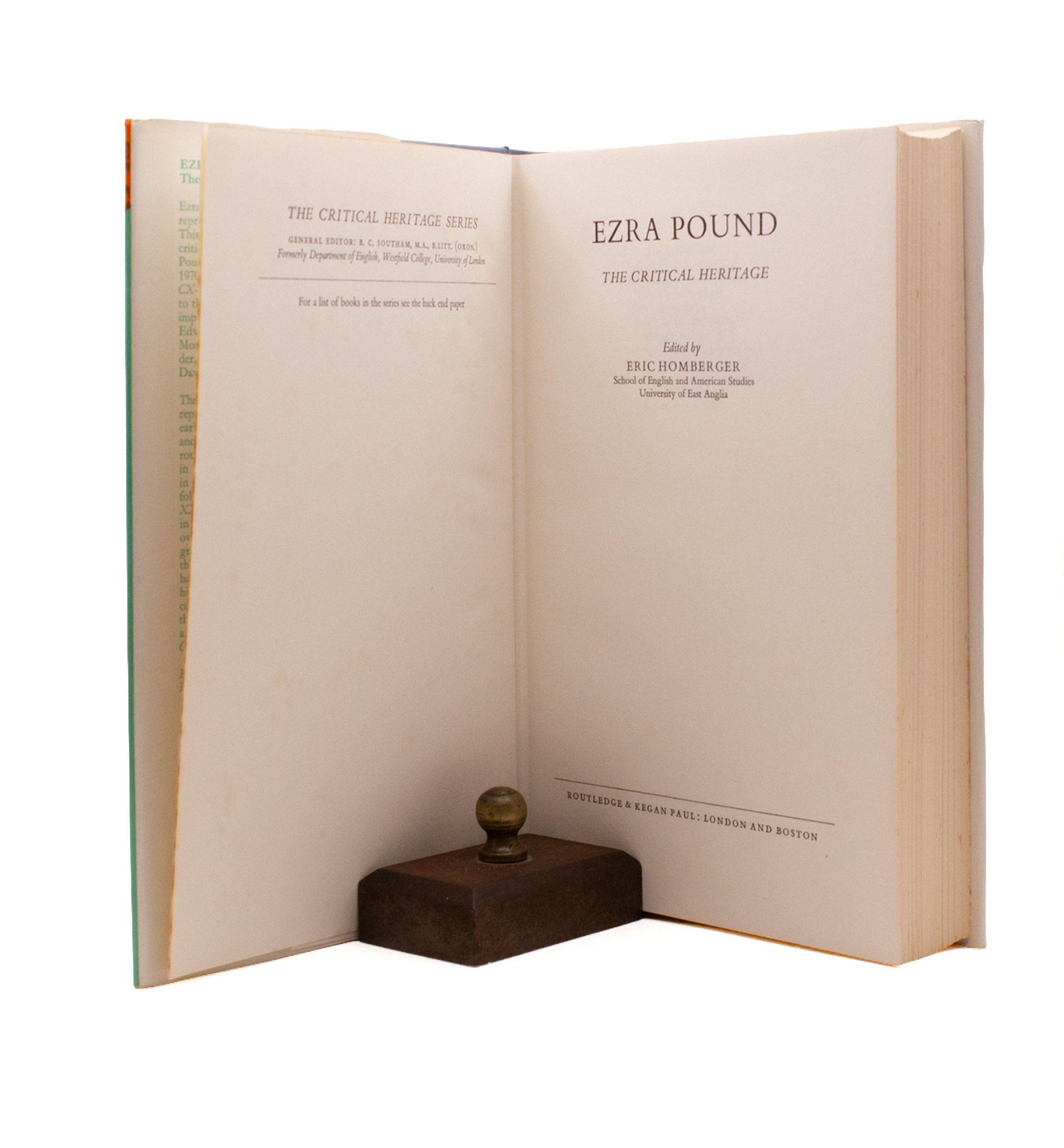 A compilation of personal reminiscences, analyses and commentaries; a tribute for the poet’s eightieth birthday. First edition. With numerous illustrations, including a number of manuscripts and the front wrapper of Orientamenti (1944), “one of the rarest of all Pound’s books.” The very occasional marginal note, and a note in ink laid in to rear from David Moody, referencing “the custodian of Ezra Pound’s papers,” which was how Stock was described on the rear flap before that being blacked out. A near fine book in a very good jacket, with a little rubbing, a small tear to the back, and a little loss to the front.