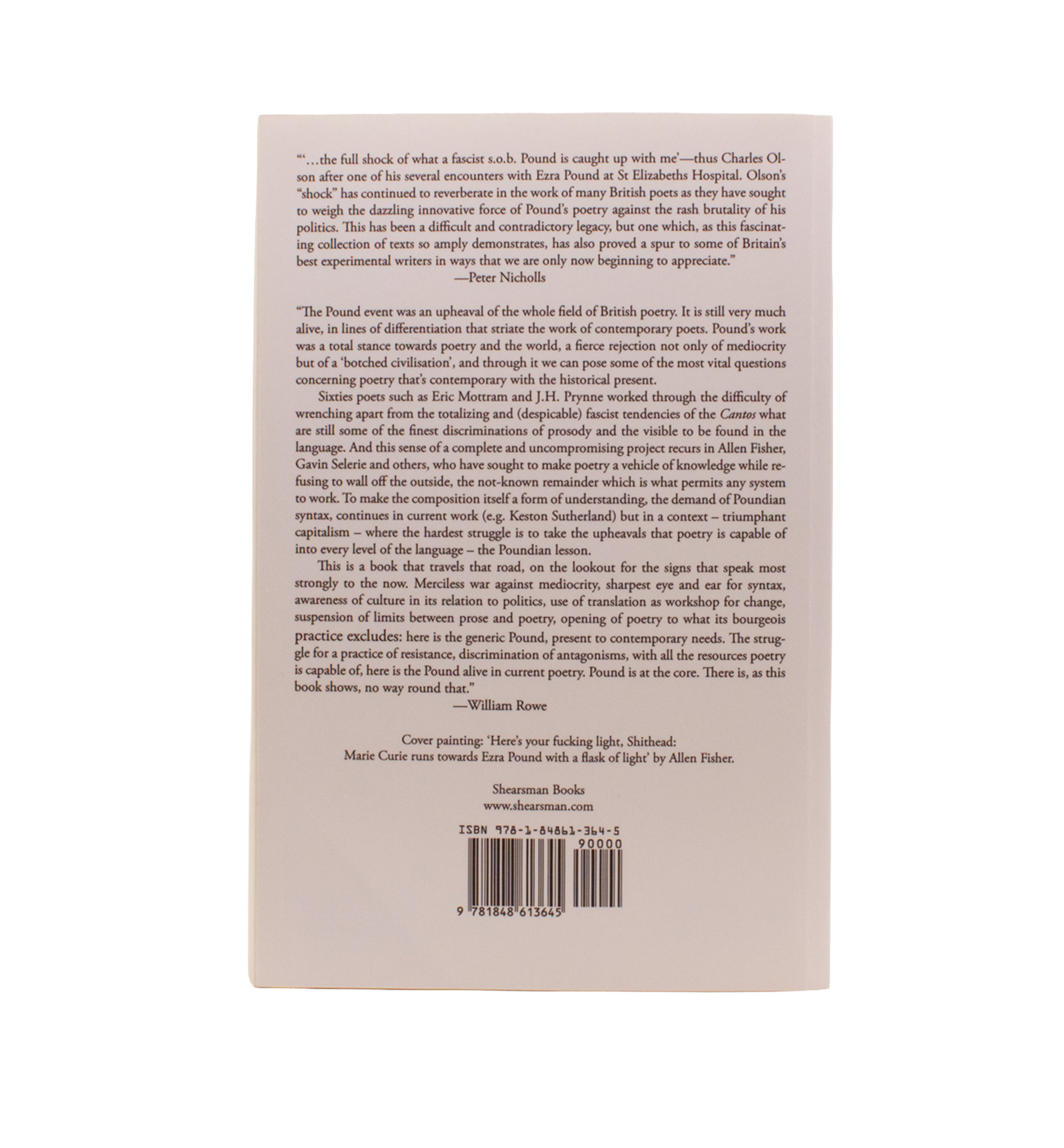 Contents: Richard Parker, ‘“Here’s Your Fucking Light Shithead”: Ezra Pound and Contemporary British Poetry”; Keston Sutherland, “In Memory of Your Occult Convolutions”; Amy Evans, ‘“So I think a beginning has been made”: Ezra Pound, Robert Duncan and Eric Mottram”; Eric Mottram (ed. Amy Evans), “Pound, Olson and The Secret of the Golden Flower”; Robert Hampson, ‘Eric Mottram and Ezra Pound: “There is no substitute for a life-time.”’; Alexander Howard, “Compacts, Commerce, and a Few Remarks Concerning Andrew Crozier”; Mark Scroggins, ‘The “half-fabulous field-ditcher”: Ruskin, Pound, Geoffrey Hill’; Josh Kotin, “Blood-Stained Battle-Flags: Ezra Pound, J.H. Prynne and Classical Chinese Poetry”; Ryan Dobran, “Myth, Culture and Text: Ezra Pound’s Homer and J.H. Prynne’s Aristeas”; Gareth Farmer, ‘“Obstinate Isles” and Rhetorical Sincerity: Veronica Forrest-Thomson and Ezra Pound”; Laura Kilbride, ‘“Real Games With Books”: On Anna Mendelssohn and Ezra Pound”; Allen Fisher, “Atkins Stomp”; Juha Virtanen, ‘Allen Fisher Reading: Facture, “Atkins Stomp” and Ezra Pound’; Gavin Selerie, “Pound and Contemporary British Poetry: The Loosening of Form”; Gavin Selerie, “Poems from Hariot Double”; David Vichnar, “P.S.: Pound and Sinclair’s Intertextual Ley Lines”; Harry Gilonis, “Second Heave — Fracture Syntax”; Tony Lopez, “Darwin in Rome: Pound and Stein”; Tony Lopez, “From Darwin, a section of Only More So”; Robert Sheppard, “The Li Shang-yin Suite”; Sean Pryor, “Some Thoughts on Refrigiration”; Danny Hayward, “Or Storming the Shopping Centre: Poetry, Competition, Pound, Quid”; Alex Pestell, ‘“All in for folly and mustard”: Pound, Zukofsky and Word is Born”; Tim Atkins, “Happiness / The Art of Poetry Being a translation of the 10 Buddhist Ox-Herding Poems.”